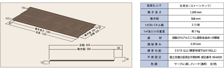 さらに、鋼板とストーンチップの複合効果により速やかな放熱が期待でき、屋根材と野地板との間に出来る適度なすき間が空気層となり断熱効果をもたらします。