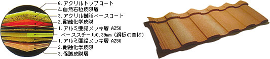 屋根はなるべく軽く、そして強風や豪雨にも耐える強いバランスをもった安心の屋根材です。 |