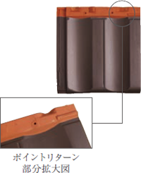 | 下の瓦のハイパーアームが上の瓦のアンダーロックをがっちりと押さえ込むため耐風性能が発揮されます。台風時などの強風に威力を発揮するオリジナルな工夫です。愛知県三河窯業試験場で行った耐風圧性能試験にて「瓦屋根標準設計施工ガイドライン」にもとづいた数々の試験を行い、強さも証明されています。 |